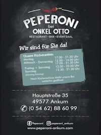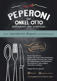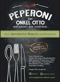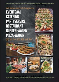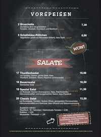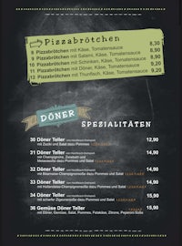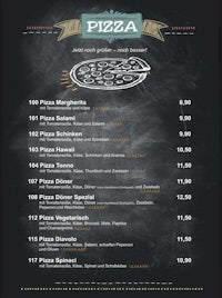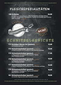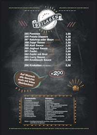 Die Speisekarte im Lokal umfasst mehr Gerichte als die Karte für den außer Haus Verzehr.
