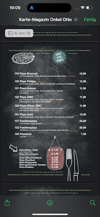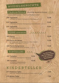 Die Speisekarte im Lokal umfasst mehr Gerichte als die Karte für den außer Haus Verzehr.